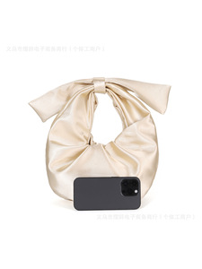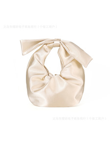 设计感跨境韩系纯色色丁缎面蝴蝶结手拿晚宴包 褶皱气质旗袍手提