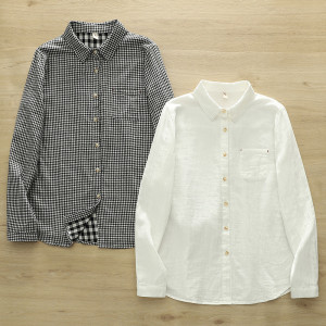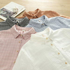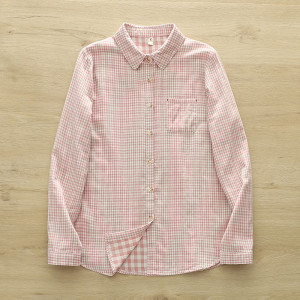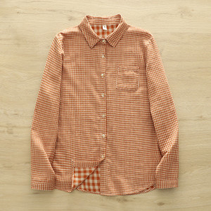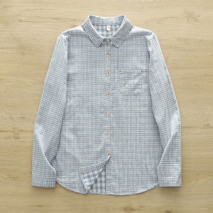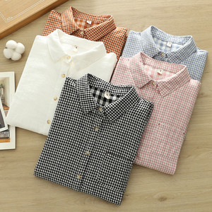日系森女格子棉纱小清新宽松女士开衫长袖衬衫打底衫批发