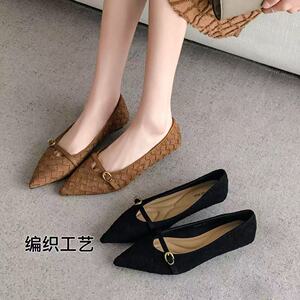 朱朱家2025秋季新手工编织气质尖头一字扣平底女鞋浅口26B3266