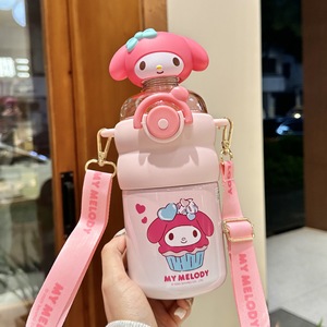 正版三丽鸥儿童水杯316保温杯学生上学便携斜跨水壶大容量吸管杯