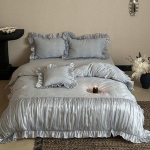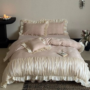 法式公主风全棉磨毛打褶荷叶花边四件套温柔长绒棉纯棉少女心被套
