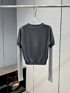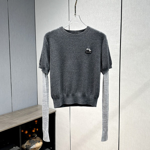 深圳南油时尚设计感假两件蝴蝶结长袖拼接针织衫女2025年秋季新款