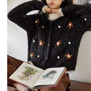 韩系立体钩花开衫毛衣女秋冬2025新款法式复古高级感温柔风针织衫