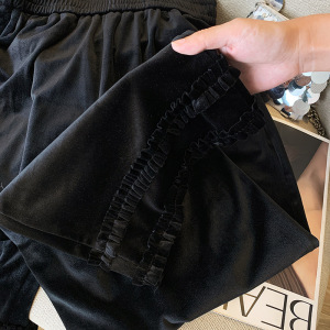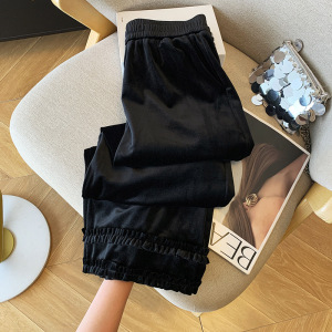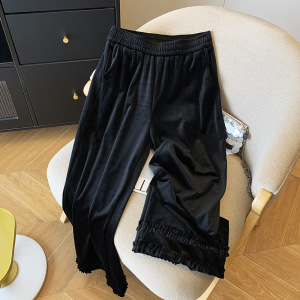 金丝绒阔腿裤女高腰2025早秋新款时尚宽松木耳边九分休闲直筒裤潮