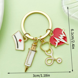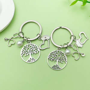 跨境珍珠护士医生生命树钥匙扣钥匙圈针筒听诊器汽车包包饰品挂件