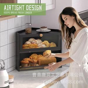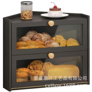 家用实木拐角面包箱厨房木质双层面包收纳盒木制面包糕点存储盒