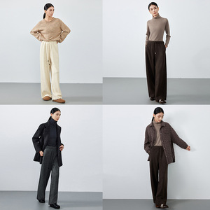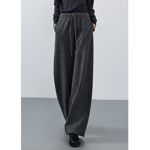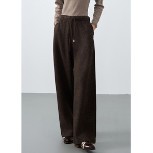 复古轻奢松驰感绵羊毛休闲裤女2025秋季新款松紧腰阔腿裤卫裤长裤