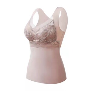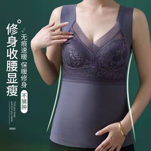 爆款秋冬季德绒保暖背心蕾丝打底衫带胸垫内衣大码无痕自发热文胸