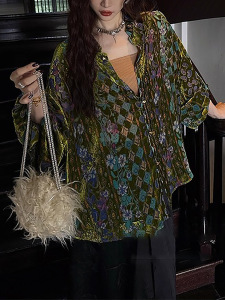 【花窗影】新中式丝绒衬衫女国风女装上衣2025秋季新款潮宽松外套