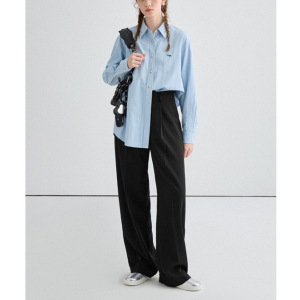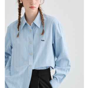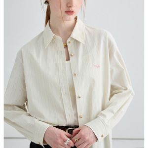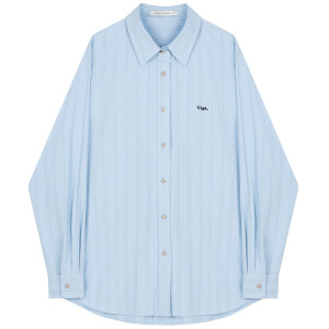 条纹衬衫女2025年秋季新款宽松廓形显瘦刺绣长袖衬衣