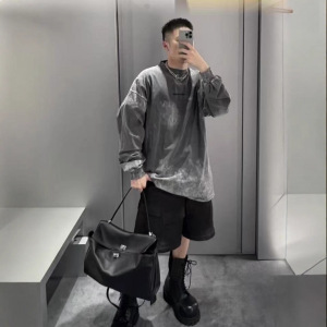 高版本BL 25年新款前后字母LOGO刺绣手绘涂鸦做旧潮牌男女长T恤