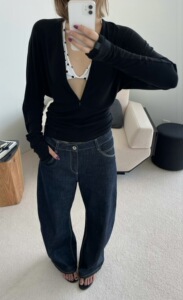 黑色/拉链V领蝙蝠袖上衣