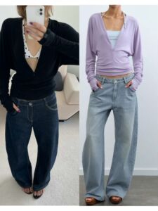 现货秋季新款可调节V领隐拉蝙蝠袖针织长袖上衣T恤 黑色/淡紫