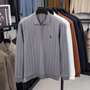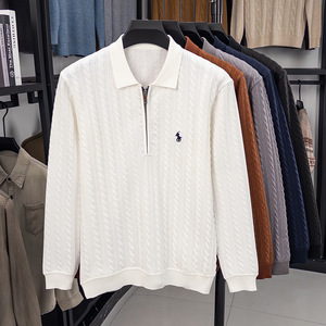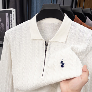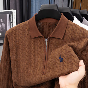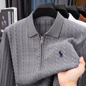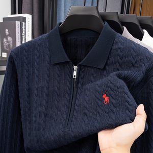 简约半拉链翻领针织衫时尚百搭花纹毛衣男秋冬长袖商务休闲打底衫