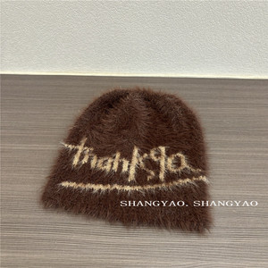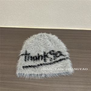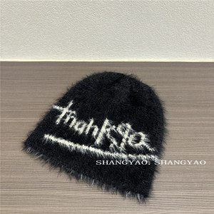 儿童帽子韩国同款冬天时髦保暖毛绒字母套头帽男女宝宝柔软护耳帽