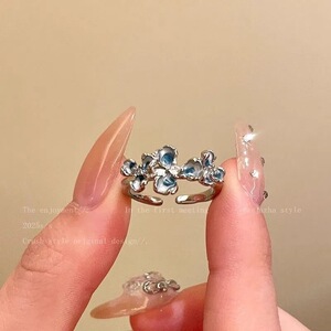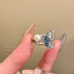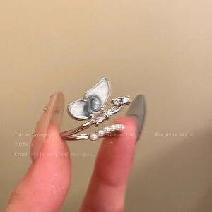 蝴蝶珍珠花朵戒指女春2025新款爆款食指戒轻奢小众高级感叠戴指环