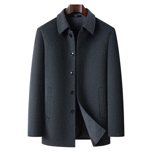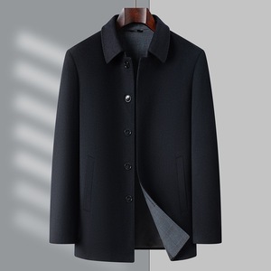 秋季新款翻领羊毛夹克中年男士扣子款上衣商务毛料茄克爸爸装外套