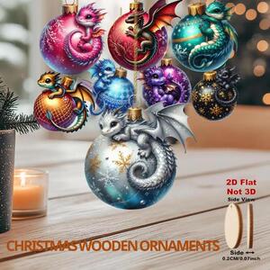 跨境新品可爱小龙木质套装挂件用于庭院家居圣诞树装饰圣诞节饰品