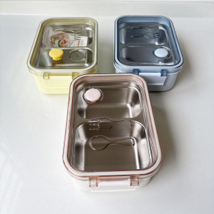 日式不锈钢饭盒简约风便当盒小学生水果盒分格沙拉减肥轻食午餐盒