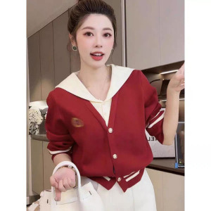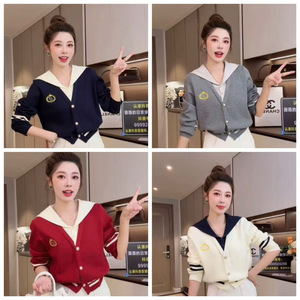小香学院风撞色海军领毛衣开衫女秋冬2025新款宽松软糯针织衫上衣