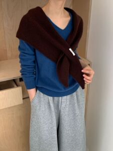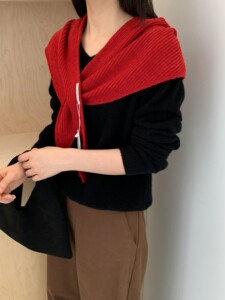 秋冬韩代同款针织披肩围巾一体多功能包头遮臀时尚叠穿百搭三角巾