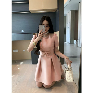 2025年夏季新款今年流行爆款气质高级感巨好看的法式粉色连衣裙女