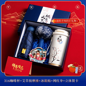 师恩难忘【铃兰咖啡杯+胶囊雨伞+艾草锤+冰箱贴+教师节贺卡】-蓝色