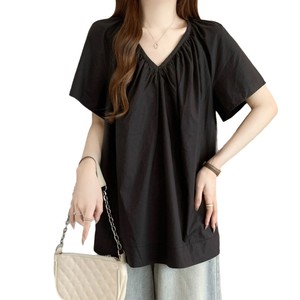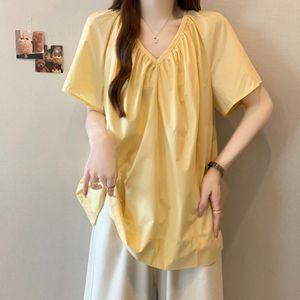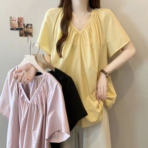 大码设计感V领正肩短袖衬衫女夏季2025新款胖mm宽松显瘦遮肉上衣