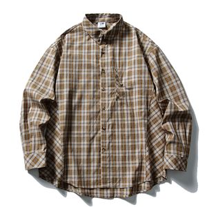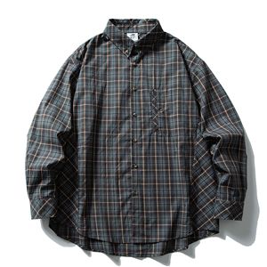 日系cityboy廓形复古文艺青年格子工装衬衫男女宽松纯棉长袖衬衣