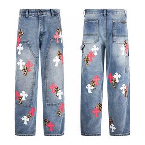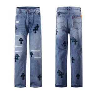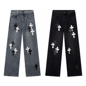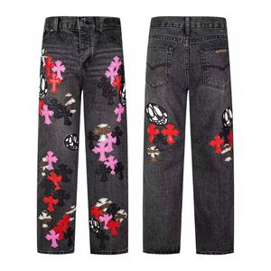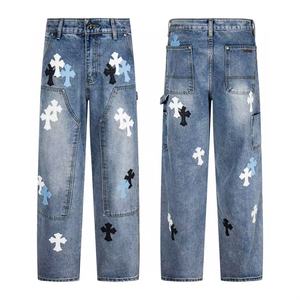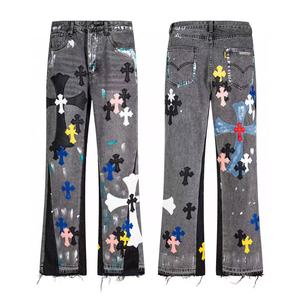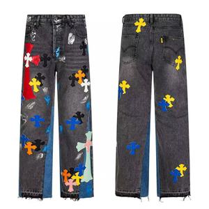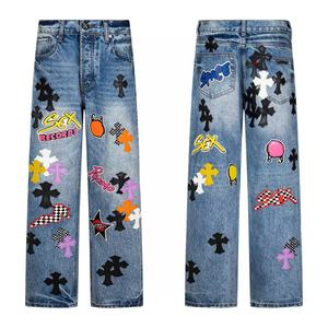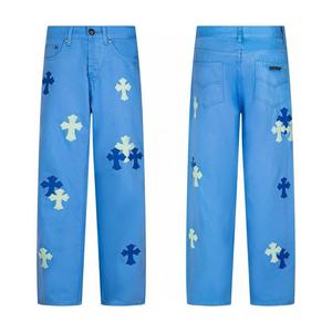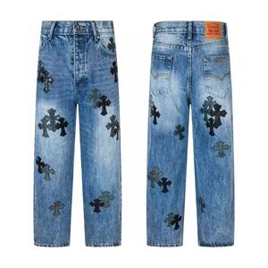 高版本潮牌CH克罗伈十字架贴皮坏重工高街贴皮牛仔裤休闲男女外贸