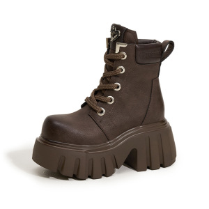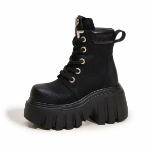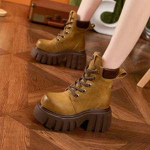 厚底马丁靴女2025秋冬季新款靴子小个子内增高短靴百搭粗跟大黄靴