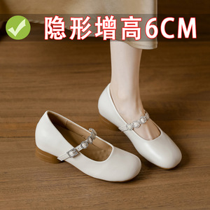 厂家直销批发小个子隐形内增高6cm一脚蹬粗跟中跟单鞋浅口玛丽珍