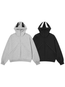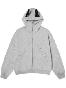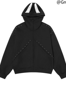 重磅杜宾犬连帽运动衫男女秋美式铆钉设计情侣外套宽松百搭上衣
