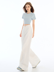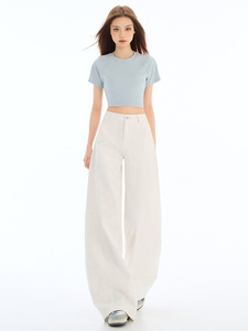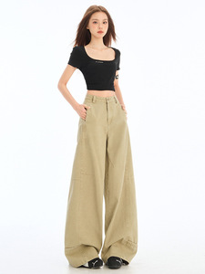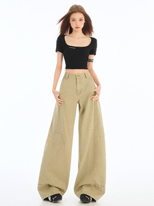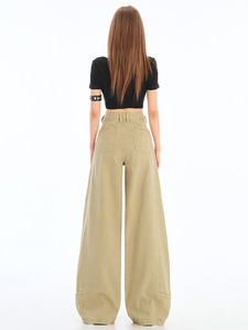 橙绢女装#卡其色复古弯刀牛仔裤女宽松拖地休闲直筒美式阔腿裤子