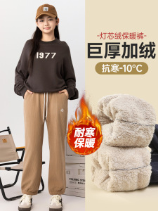 女童复古灯芯绒束脚裤一体绒中大童冬季加厚保暖休闲裤儿童裤子秋