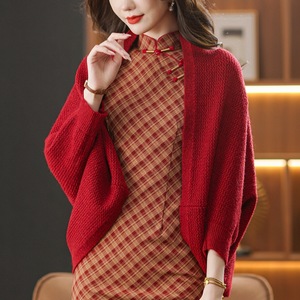 恒源祥气质妈妈秋装上衣洋气外搭针织披肩时尚短款毛衣开衫外套女
