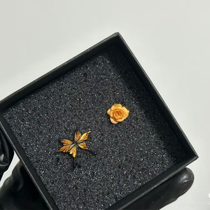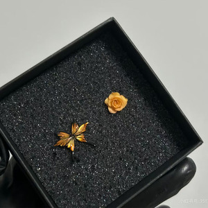 不对称蝴蝶黄玫瑰耳钉
