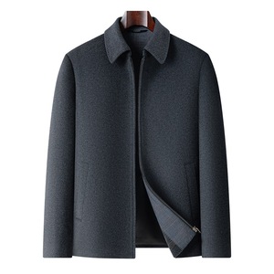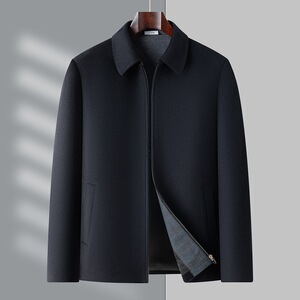 男士羊毛夹克秋季新款商务休闲毛料拉链款上衣中年翻领爸爸装外套