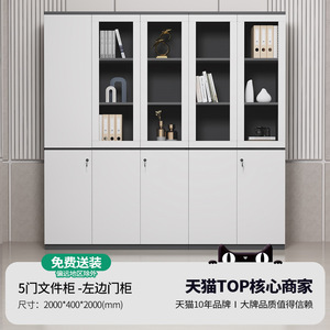 【升级E0级环保板】【包送装】5门玻璃文件柜-左边门柜