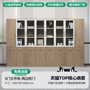 【升级E0级环保板】【包送装】8门玻璃文件柜-两边门柜