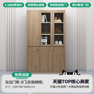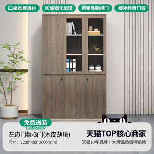 【升级E0级环保板】【包送装】3门玻璃文件柜-左边门柜(木皮胡桃+科技灰)