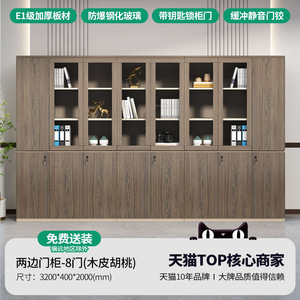 【升级E0级环保板】【包送装】8门玻璃文件柜-两边门柜(木皮胡桃+科技灰)