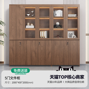 【升级E0级环保板】【包送装】5门玻璃文件柜灯带款(非洲胡桃+铁灰)