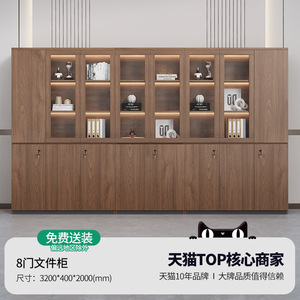 【升级E0级环保板】【包送装】8门玻璃文件柜灯带款(非洲胡桃+铁灰)