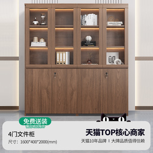 【升级E0级环保板】【包送装】4门玻璃文件柜灯带款(非洲胡桃+铁灰)