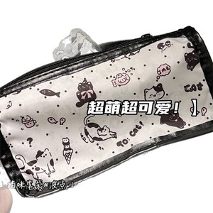 波点小猫咪双层透明笔袋ins高颜值少女心可爱学生文具收纳笔袋