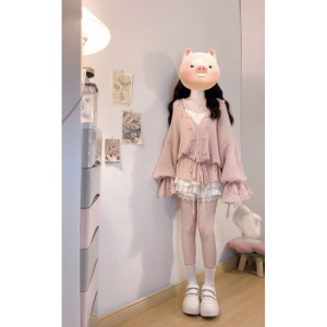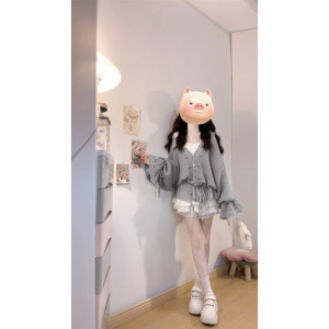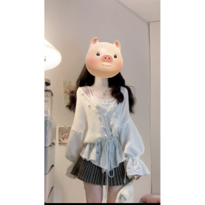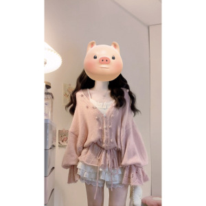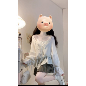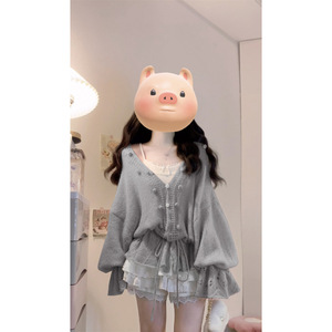 大码女装早秋法式温柔风镂空V领抽绳慵懒风显瘦针织上衣