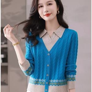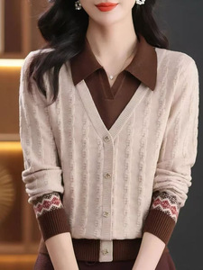 假两件毛衣女2025新款春秋洋气宽松外穿百搭打底衫翻领上衣针织衫