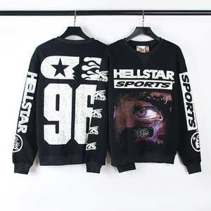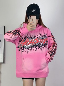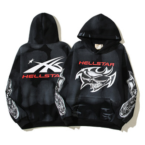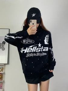 新款Hellstars Hoodies复古ins掉漆泥染美潮高街手绘涂鸦卫衣帽衫
