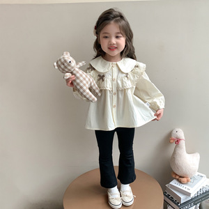 女童蝴蝶结娃娃领衬衫春秋款2025新款儿童韩版时尚小女孩休闲衬衣
